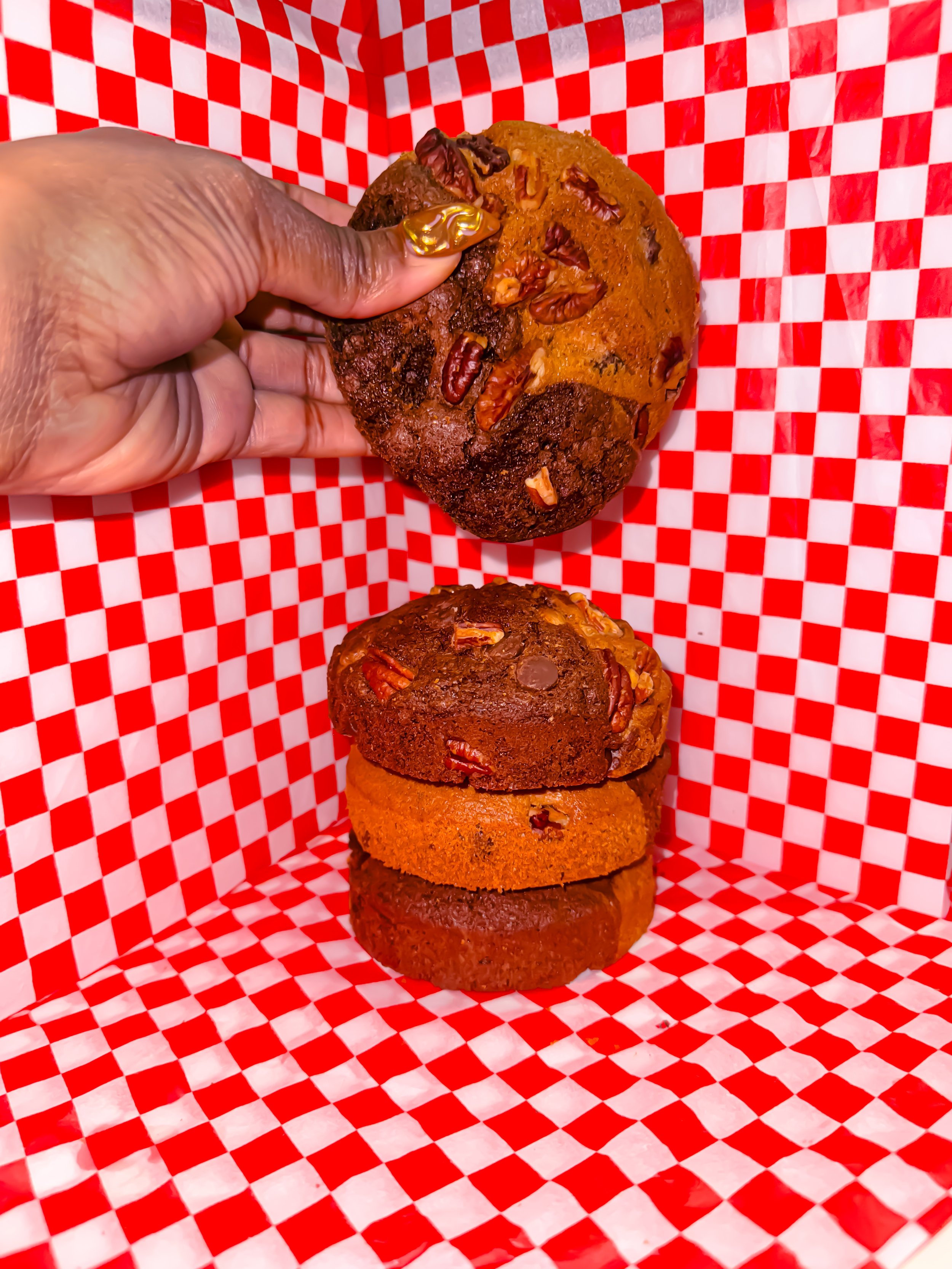 Double Chocolate Chunk meets Ch-Ch-Chocolate Chip, finished with toasted pecans